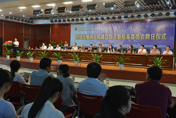 马立远、谢利根、金兼斌在成立仪式上先后致辞,祝贺网络传播研究院的成立并对研究院的建设发展寄予期望;谢利根、詹文都、柳巨波、朱文斌共同为网络传播研究院揭牌。