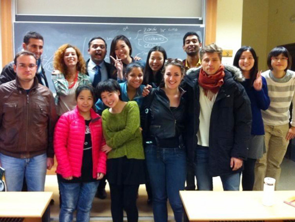 足球一世官网学生在西班牙康普顿斯大学与国际生一起学习