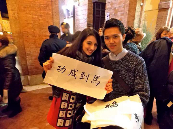 足球一世官网学生在意大利马切拉塔大学传播中国书法