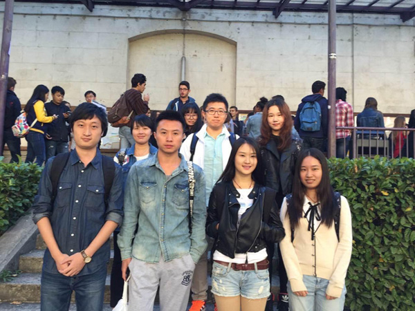 足球一世官网2015年赴法国里昂二大访学的学生在校园合影