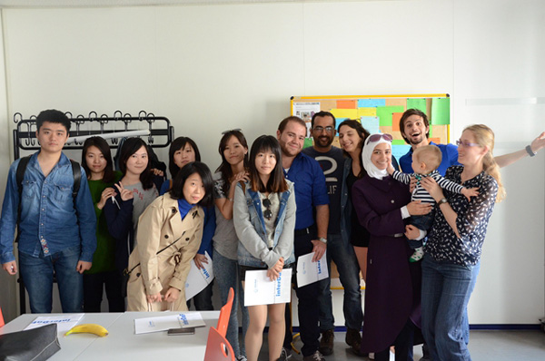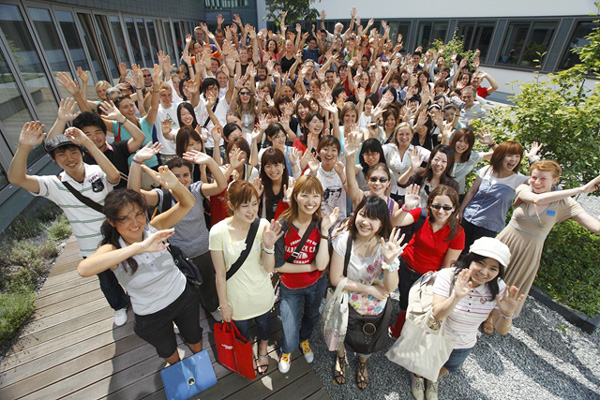 足球一世官网赴日交流学习的学生与来自其他国家的学生合影