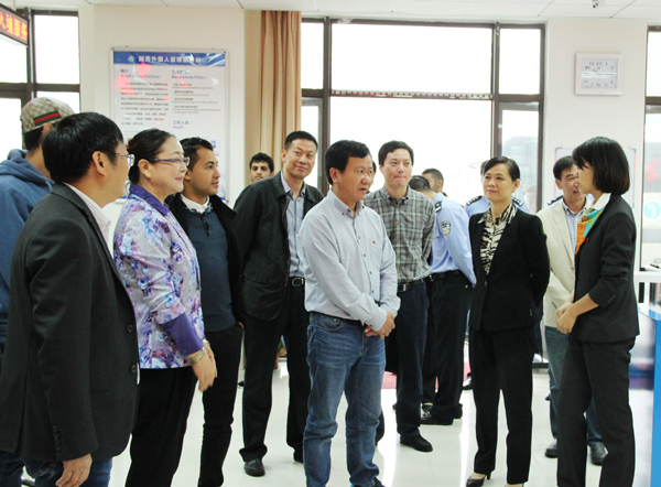 张国芳一行实地踏看了外国人管理服务站,详细了解服务项目和办事流程。当得知服务站可以为外籍师生就居住登记、证件延期受理、涉外法律法规宣传等相关事宜提供“一站式”、“零距离”的服务,张国芳对此表示充分肯定,他希望市公安局和学校要共同把服务站建好用好,使其真正成为服务外籍师生的暖心之举、便利之举。