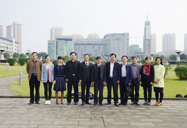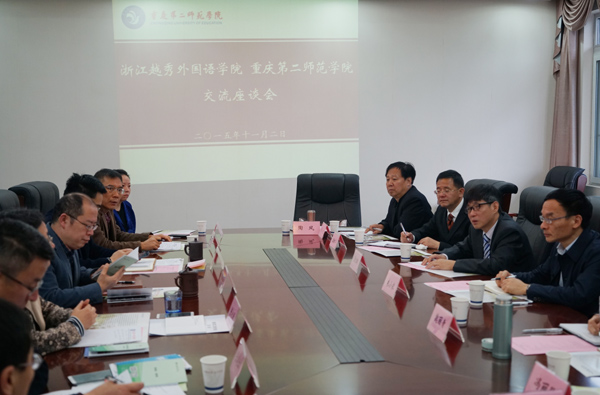 在四川外国语大学,詹文都一行与该校校长李克勇、副校长董洪川、郑白玲及教务处、科研处、发展规划处、国际合作与交流处、学工部(处)等部门领导围绕“十三五规划”编制、人才培养模式、中外合作办学项目、课程改革、毕业生“就业微课堂”、学生辅导员发展等进行了广泛的交流。