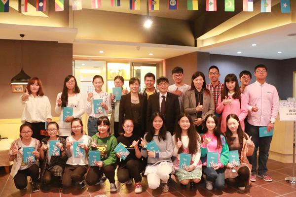 座谈会最后,詹文都执行校长向每一位与会的学生赠送了设计精美的学校纪念笔记本和活动纪念章,并与大家合影留念。