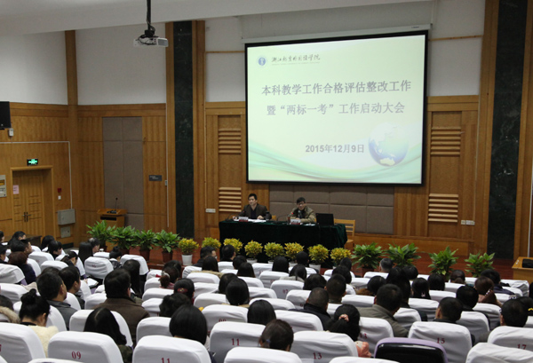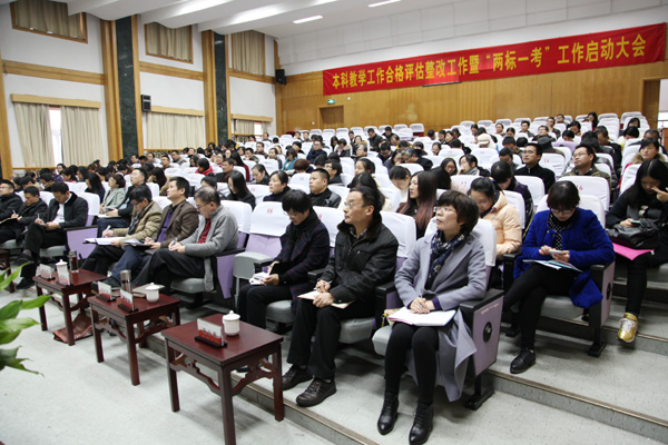 1019日至22日,教育部本科教学工作合格评估专家组对足球一世官网的本科教学工作进行了全面的检查评估,充分肯定了学校的办学成绩,指出了存在的问题和不足,提出了十分中肯的意见和建议。经过一段时间的反复讨论酝酿,129日下午,学校召开本科教学工作合格评估整改工作暨“两标一考”工作动员大会,全面启动评估整改工作。