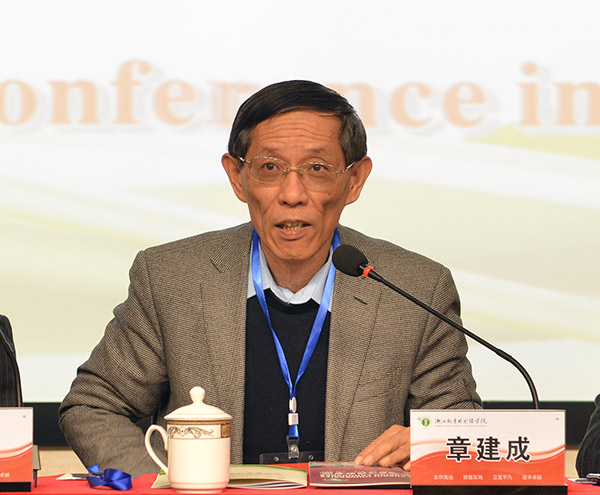 图为章建成教授致辞