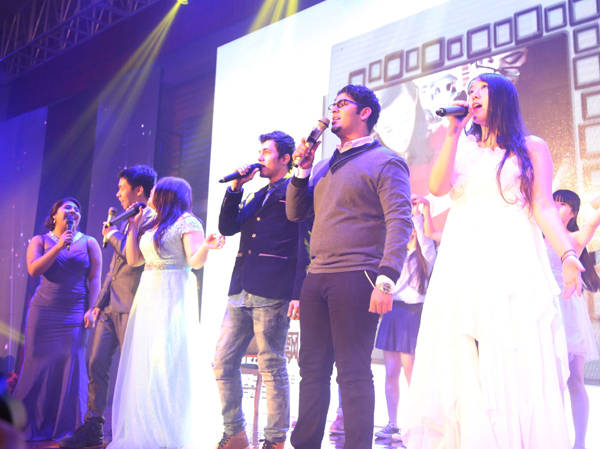 留学生带来的歌曲大联唱《世界在你周围,我们在你身边》,外籍教师们献上的歌曲串烧《Someone like you》,校合唱团和网络传播学院的精彩演唱《The lion sleeps tonight》,以及由全体演职人员共同演绎的大型歌伴舞《美丽的新天地》等一个个绚烂的节目轮番上演,无不展现着越秀师生喜迎新年的热闹欢腾。中外师生联合主持、共同表演,也让此次迎新晚会成为了一场具有浓郁中国风情又“洋味”十足的视听盛宴。