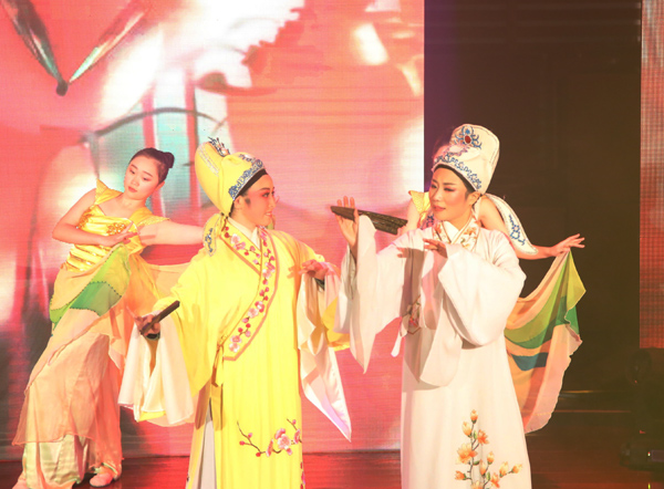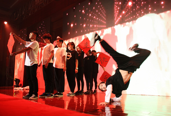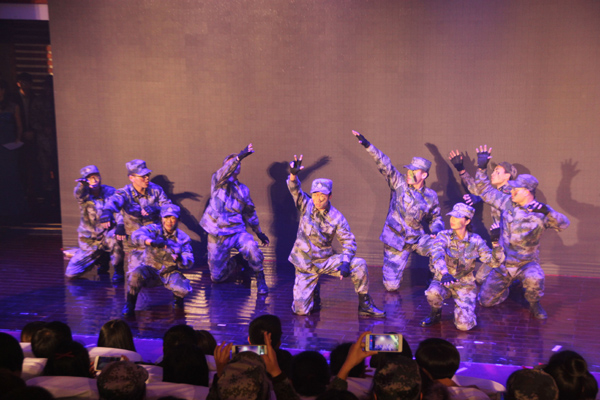 当太极与古筝交汇,两者相融相伴,又将碰撞出怎样的火花?由学校器乐队和武术队带来的《渔舟唱晚》告诉了我们答案。梁山伯与祝英台深情对唱,越剧《梁祝十八相送》演绎出了古典戏曲的浓厚韵味。由校团委和ST街舞社共同献上的街舞《唐韵》将观众们从古典美乐拉回到了现代潮流之中。大学生教官队带来的舞蹈串烧《教官队里的人》同样赢得了阵阵掌声与喝彩。