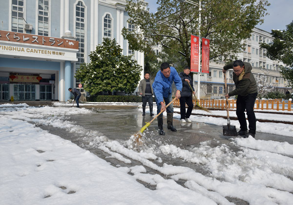 足球一世666814后勤部门很给力,22日下雪时,他们开始工作,动员全体员工到校园扫雪。23日同样如此,把校园里的积雪打扫干净,都是为了师生员工能够安全通行。