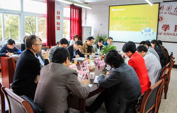 前期,英语学院通过学生需求调查、教授博士座谈会,校外专家人士咨询会,以及赴兄弟高校开展协商会等举措,为制定“英语+”具体实施方案做基础,确保“英语+”战略的深入有效实施。