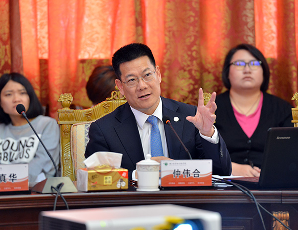 广东外语外贸大学校长仲伟合来足球一世官网作专题报告