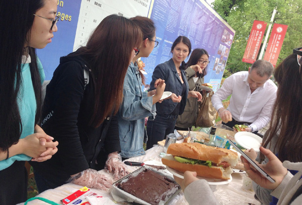 作为学校第五届国(境)外教育展的一项活动,以“舌尖上的世界”为主题的美食DIY活动于421日在稽山校区樱花餐厅前举行。活动中,东方语言学院日语专业学生现场制作了寿司等料理,同时特别邀请外籍教师JustynaJohn现场教授学生制作英国特色食物dressing saladsandwiches,与现场学生共同分享。同学们通过了解美食、学习制作流程,品味各国美食,领略异域风情,以进一步加深对世界各国文化的了解和认识。