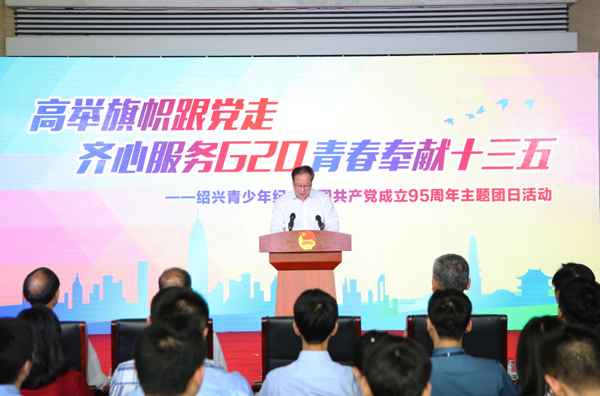 共青团绍兴市委书记韩彬翔作了主题发言,阐述了高举团旗跟党走,开展“学党史、知党情、跟党走”主题教育活动;勇担时代责任,开展“护航G20、青春勇担当”行动;深化共青团改革,为“十三五”开局贡献青春力量等内容。