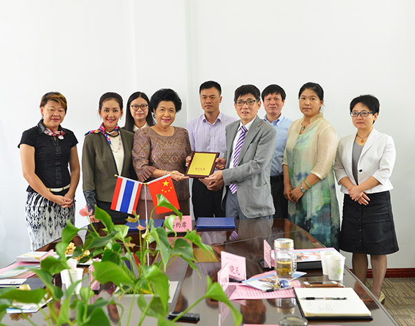 6月17日上午,詹文都执行校长会见来访的泰国川登喜大学Pacharee Suankaew副校长、Pornchanie Kaew-nate副校长一行5人,双方共同签署校际合作交流备忘录,在教学、科研、学生交流等方面开展合作。