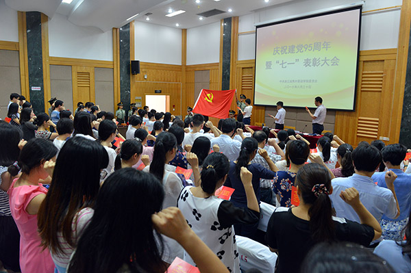 为纪念中国共产党建党95周年,深入推进“两学一做”学习教育,激励广大党员进一步发挥先锋模范作用,根据上级党组织的统一部署,6月30日下午,学校2016年党组织及党员表彰大会在稽山校区图书馆报告厅隆重举行。执行校长、党委常务副书记詹文都出席会议并作重要讲话,党委副书记张永波宣读表彰文件及关于首批党建特色品牌创建活动立项的通知;校领导李建平、朱文斌、单胜江、朱小农以及学校“两优一先”表彰对象,党员干部和党员代表参加会议。会议由学校党委副书记施文妹主持。