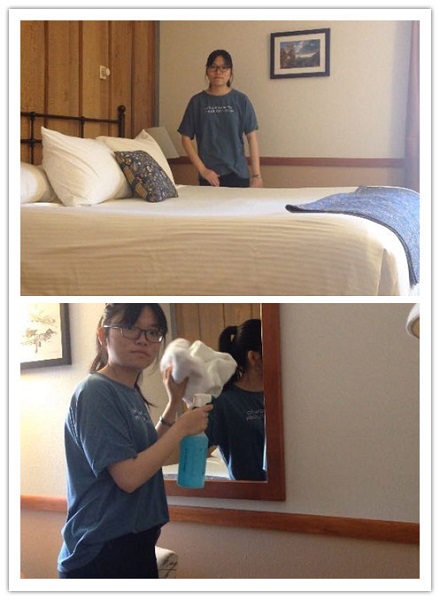 英语学院的吴佳佩说道:“我在科罗拉多州的crested butte 小镇上的Cristiana Guesthaus 旅馆里担任housekeeping的工作,这是我成长过程中第一次独立地参与工作,我既紧张又兴奋。上了一段时间班,我觉得这份工作尽管有点单调,没有我想象中的那么有趣,但是最重要是,我在这里认识了好多超级棒的美国人!我的雇主,同事和旅馆的住客都非常友好,我有好多好多的多机会和他们说话,完全使用英语跟他们聊天,这里的语言环境比在国内好多了 !不断地练习和他们练习口语,我觉得我已经不再那么胆怯,我变得越来越自然,再也不害怕说错。而且雇主他们经常会带我一起参加当地的一些文化活动,我感觉我是真的走进了他们的生活,走进了英语。我相信这个暑假我一定会过得非常充实,非常有收获! ”