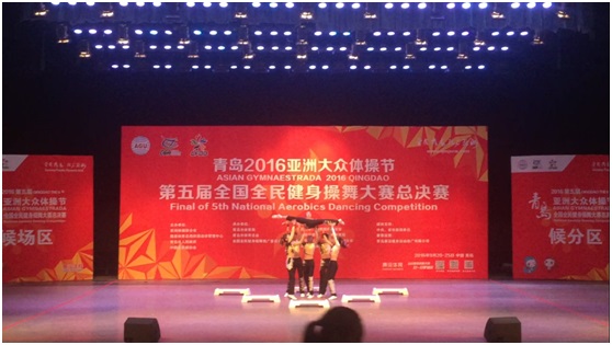 2016年9月20日-25日,由亚洲体操联合会、国家体育总局体操运动管理中心、中国健美操协会、青岛市人民政府举办的“2016亚洲大众体操节暨第五届全国全民健身操舞大赛总决赛”在青岛大学隆重举行。足球一世官网健美操队荣获街舞嘻哈舞第一名特等奖;2015Hiphop推广套路一等奖;2016全国踏板健身操一等奖;FIG自编有氧舞蹈一等奖;FIG自编有氧踏板一等奖;街舞自编综合齐舞二等奖。同时,足球一世官网教练获得“年度优秀教练”荣誉称号。