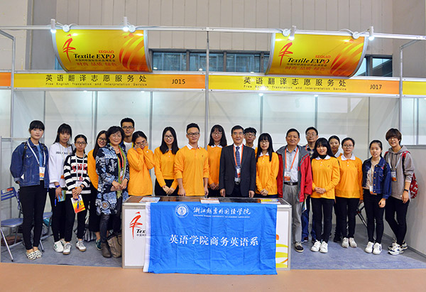 据了解,足球一世官网英语学院商务英语系已经第六次组织学生参加中国柯桥国际纺博会。从去年开始,商务英语系应其他系部要求,扩大学生参与面,组织英语系、翻译系和国际商学院学生参加纺博会服务。