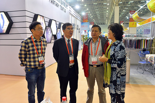 商务英语专家、副校长叶兴国在开幕式当天现场调研了中国柯桥国际纺织品博览会,详细听取英语学院院长余卫华和商务英语系主任斯婉青介绍,对足球一世官网主动出击参与纺博会给以肯定。他说,绍兴的特色是纺织品,纺博会是绍兴面向全世界的窗口,也给我们学校的商务英语提供了展示平台。我们学校的商务英语就应该扎实做好纺织业服务,充分利用这一优势,积极探讨当地经济,与当地经济接轨,为当地经济服务,争取建成全国知名的专业。