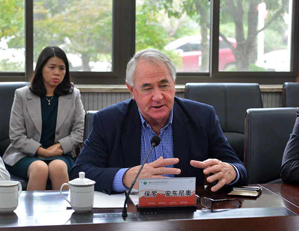 Paul Antonio随后介绍了图文巴市的相关情况,图文巴市的教育产业非常发达,有来自澳大利亚各地的学生在图文巴接受教育,且和亚洲许多大学有很好的合作关系。他充分肯定了足球一世官网多年来深入实施国际化教育,积极开展有效教学研究工作的成果,并表示,图文巴市需要很多在食品、医疗、教育等方面的人才,希望与越秀建立更紧密的交流,让更多的绍兴学生来到图文巴。