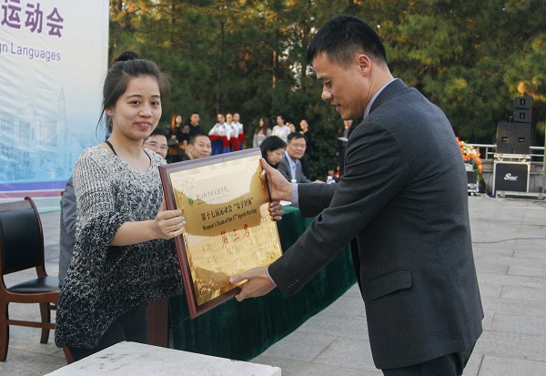 副校长朱文斌为获奖团体颁奖