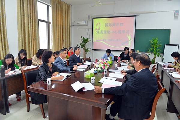 11月8日上午,国际商学院召开党委理论中心组学习会,学习党的十八届六中全会精神。学校副校长兼国际商学院院长叶兴国出席会议。会议由党委书记单胜江主持。