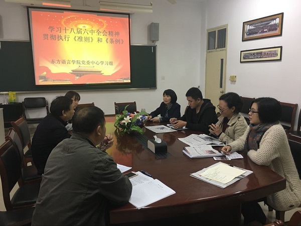 11月7日下午,国际学院党委理论中心组专题学习党的十八届六中全会精神。院长何建乐、副院长陈文涛,学院各党支部负责人参加学习。会议由党委书记王海红主持。