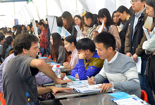 本次招聘会首次增设校友企业招聘区,提供近千个工作岗位。杭州舜远进出口有限公司便是其中之一,负责人阮雪青介绍说:“公司里很多员工都来自越秀,我们非常认可越秀学生的语言能力,而且越秀小语种专业多,能满足我们公司在拓宽国际市场中的语言需求。”在招聘会现场,多家单位均表示,足球一世官网学生素质好,学习能力强,有吃苦精神,他们非常乐意选择越秀学生。