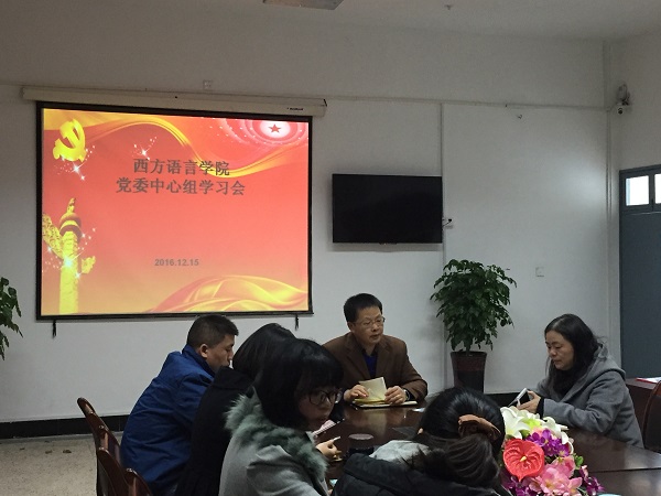 12月15日下午,西方语言学院党委中心组学习习总书记全国思政工作会议讲话精神。学习会上,学院党委副书记陆海萍认为,要坚持把立德树人作为中心环节,把思想政治工作贯穿教育教学全过程,实现全程育人、全方位育人,努力开创我国高等教育事业发展新局面。