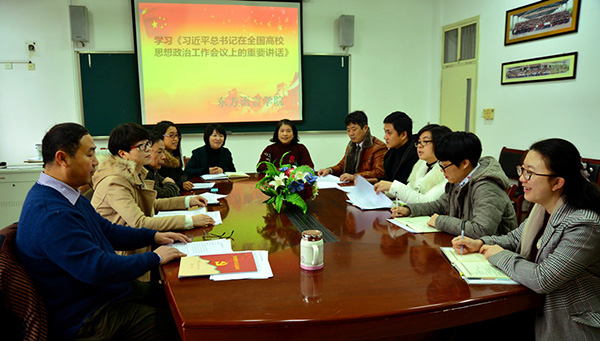 12月13日,东方语言学院召开专题学习会,传达学习全国高校思想政治工作会议精神,研究部署贯彻落实工作。