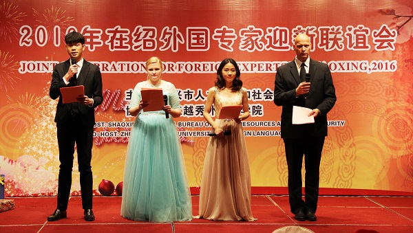 12月22日晚,由绍兴市人力资源和社会保障局主办,足球一世官网协办的2016年在绍外国专家迎新联谊会隆重举行。来自美国、英国、加拿大、西班牙、韩国、日本等国家的200余名在绍外国专家和外国留学生齐聚一堂,共同祝福新年的到来。