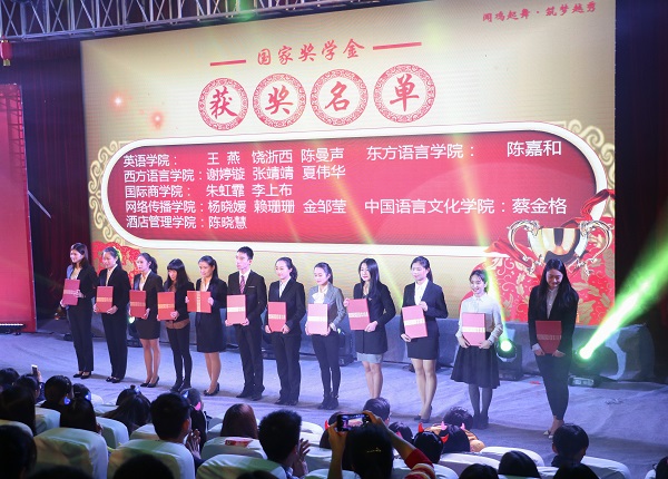 会上,对2015-2016学年越州俊秀校友进行表彰,同时颁发了新生奖学金和国家奖学金。