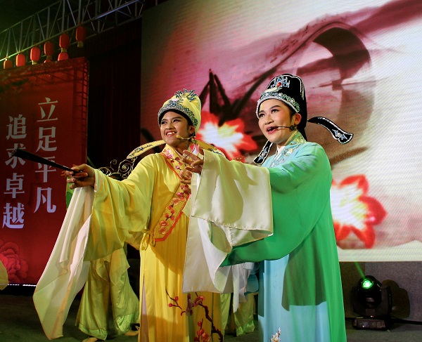 饱含深情的器乐重奏《如歌》悠扬动听,余音绕梁。由外籍演员联合演出的越剧《越声荟萃》演绎出了古典戏曲的浓厚韵味,其中“京剧变脸”赢得了观众阵阵喝彩。校健美操队的操舞融合《青春绽放》将观众们从古典美乐拉回到了现代潮流之中,动感十足,展现热情似火的青春魅力。