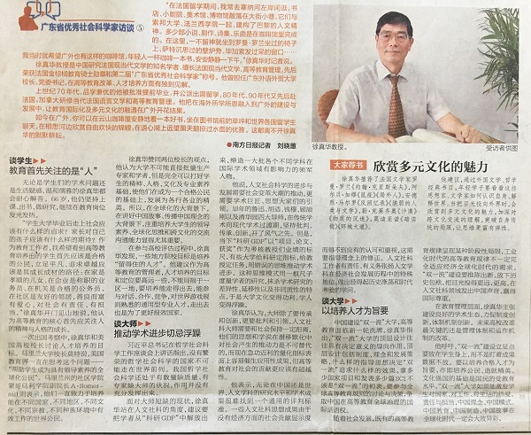 --《南方日报》专访足球一世官网校长、广东省优秀社会科学家徐真华教授