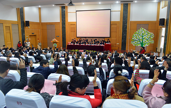 费君清教授宣读了大会决议(草案),大会审议并全票通过这个决议。全校教职员工将在校党委的领导下,深入贯彻落实党的十八届六中全会和习近平总书记系列重要讲话精神,紧紧围绕校十三五发展规划确定的战略目标,为实现“百年越秀梦”和“中国民办大学卓越品牌”的建设目标而努力奋斗。