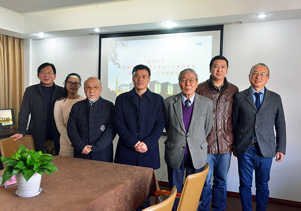 1月13日上午,绍兴市外商投资企业协会日商俱乐部会长铃木贤一行三人来足球一世官网交流访问,足球一世官网副校长朱文斌和中国语言文化学院、东方语言学院负责人出席会谈。