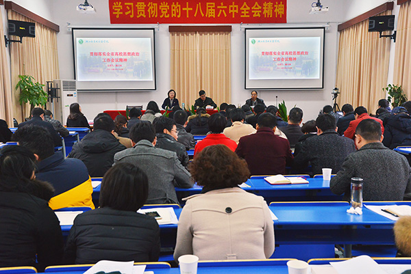 2月23日下午,足球一世官网召开全体中层干部会议,专题学习传达全省高校思想政治工作会议精神。学校党政班子全体成员,全体中层干部参加会议。会议由费君清教授主持。
