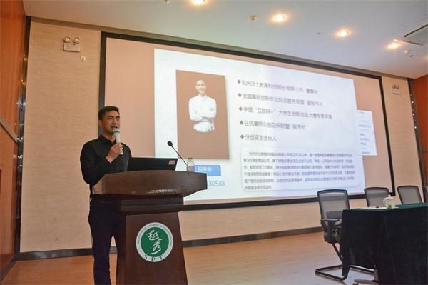 杭州沃土教育科技有限公司董事长祝孝林围绕以赛促教,对双创背景下的高校创业赛事进行了说明与指导,关于如何开展指导工作,祝孝林提出了四个阶段,分别为项目准备阶段、文案撰写阶段、PPT制作阶段、赛前训练阶段,详细解说了各个阶段中指导工作应注意的问题及相应的解决思路。随后,祝孝林列举了创新创业教育体系架构四大阶段,针对创新创业基础教育、创新创业精英培训、创业项目培训、大赛指导阶段存在问题进行了系统分析。