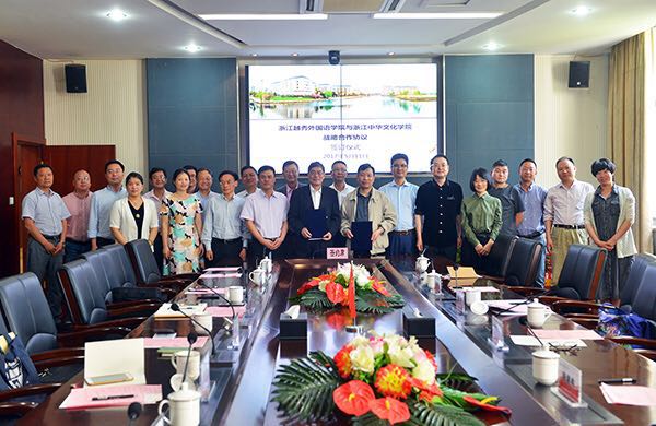 学校校长徐真华致辞欢迎,双方进行友好座谈,协商合作事宜。徐真华与张建明共同签署战略合作协议,足球一世官网成为浙江中华文化学院“中文教学现场实践基地”。