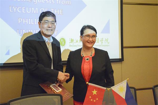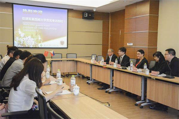 5月14日下午,菲律宾莱西姆大学副校长Dr.Esmenia.R.Javier带队访问越秀。校长徐真华、国际商学院党委书记单胜江接待来访团。
