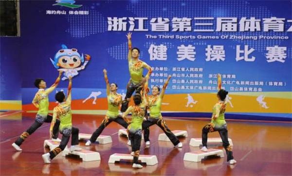 5月12日—15日,由浙江省人民政府主办,舟山市人民政府、浙江省体育局承办的浙江省第三届体育大会健美操比赛在岱山县举行。本次大赛由来自11个市的300多名健美操健儿参加,其中有国家健美操队预备力量的队员、健将和众多国家级高水平运动员。