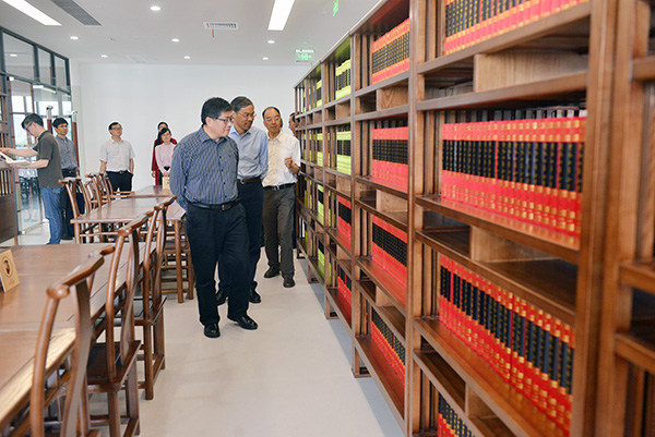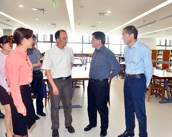 尔后,副省长成岳冲一行来到镜湖校区图书馆,仔细观看了图书馆大厅、期刊阅览室、古籍阅览室、报告厅等,听取对图书馆的建设情况的介绍,饶有兴趣地询问图书馆大厅的设计构思和阅览室富有人性化的配置,对图书馆积极运用先进对科技手段和产品为师生提供服务表示了充分肯定,在报告厅,他察看报告厅软硬件设施,并要求这种先进装备设施应面向政府和社会服务。