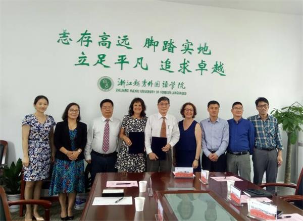 2017年6月14日,法国克莱蒙商学院集团总经理兼校长Francoise Roudier,本科教育部主任Angeline Pinglot,法国克莱蒙商学院在华代表、宇佳教育总经理Marcel Xiang一行来访足球一世官网,在稽山校区E-202会议室举行会谈,并签署校际合作协议。学校校长徐真华出席。副校长朱文斌,国际合作交流处、西方语言学院、国际商学院英语学院相关负责人参加会议。
