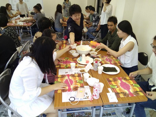 (图为学校里老师教授学生做饭团子)