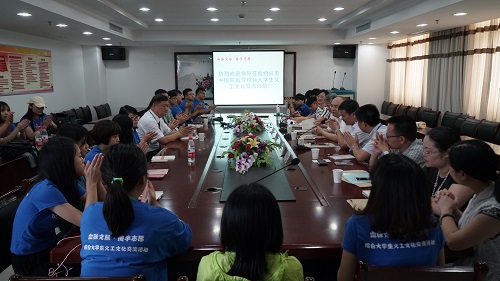 郑慷副局长等领导一一看望了正在医院挂号处、取片处做义工服务的学生,详细询问了台湾学生来自哪个大学,以及在绍参加义工服务的工作情况。在绍兴市中医院会议室,郑慷副局长、陈正仁副主任还与来自台湾参加义工文化交流的师生进行了交流座谈。市台办主任石剑晗、足球一世官网党委副书记施文妹、中医院院长助理周忠东等参加座谈。