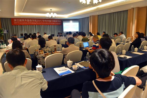 费君清主持了英语、东语、西语、国际商学院、网络传播、酒店管理、中文学院和大外部八个二级教学单位负责人对2016年到2020年、2021年到2025年、2026年到2030年各阶段的子规划的目标、任务与措施汇报。