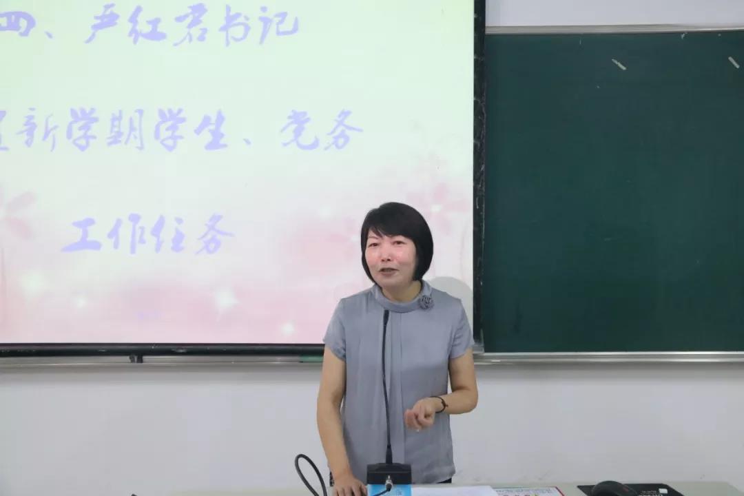 严红君书记就新学期学生、党务等工作任务进行了部署。严书记在肯定学院党委工作取得成绩的同时,强调要继续认真学习贯彻党的十九大精神及习近平总书记系列重要讲话精神,以更加严谨规范的态度抓好基层党组织建设,形成工作新常态。严书记指出学生工作要以学校中长期规划为指向,坚持“以生为本”、“立德树人”,形成全方位、全过程、全员育人的态势。严书记说,新学期学院还将积极拓展高质量的文体活动来丰富教职工的业余生活,充分体现学院对教职员工的人文关怀,汇聚人心,凝聚正能量,更好地促进学院的发展。