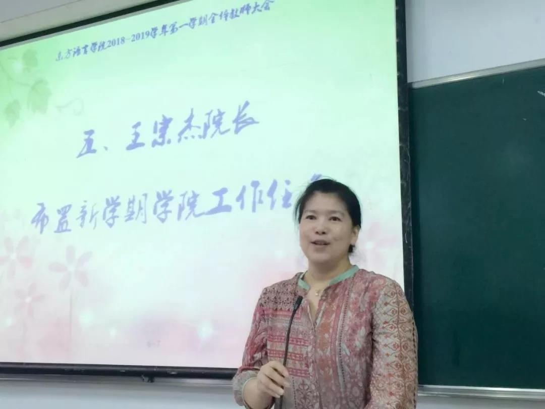 会上,王宗杰院长对本学期学院工作重点做了总体安排,对广大教职员工提出了新的希望和要求。教学管理方面,王院长再次重申要坚决维护正常的教学秩序。她说,正常的教学秩序是教学质量的重要保证,必须进一步规范调停课审批制度、严格审批制度,杜绝教师随意调停课现象;王院长指出学院坚持引进和培养并重的政策,继续强化师资队伍建设。新学期将努力引进高学历高层次的年轻教师,为学院注入新生力量。还将聘请国内外一流的专家学者,引领学术及带动教师专业化发展;科研方面,在现有的科研成果基础上,学院将多管齐下,大力扶持教师科研创新;国际化工作方面,本学期阿拉伯语和印度尼西亚语专业的学生实现了“成建制”整班赴海外交流学习。王院长指出这是学院国际化建设迈出的一大步,今后学院将通过积极拓展,资源整合来打通国际化通道,不断推动学院国际化建设;王院长强调新学期学院工作重点在于进一步推动内涵建设,提升学院软实力,学院已为教师们搭建好平台,教师们要做好职业生涯规划,在保质保量完成教学任务的同时,积极投入到学术研究中,注重自身专业化发展,提升软实力。她要求全院上下以积极的心态,饱满的热情,投入到新工作中,为学院的内涵建设、软实力的提升,贡献自己的一份力量!