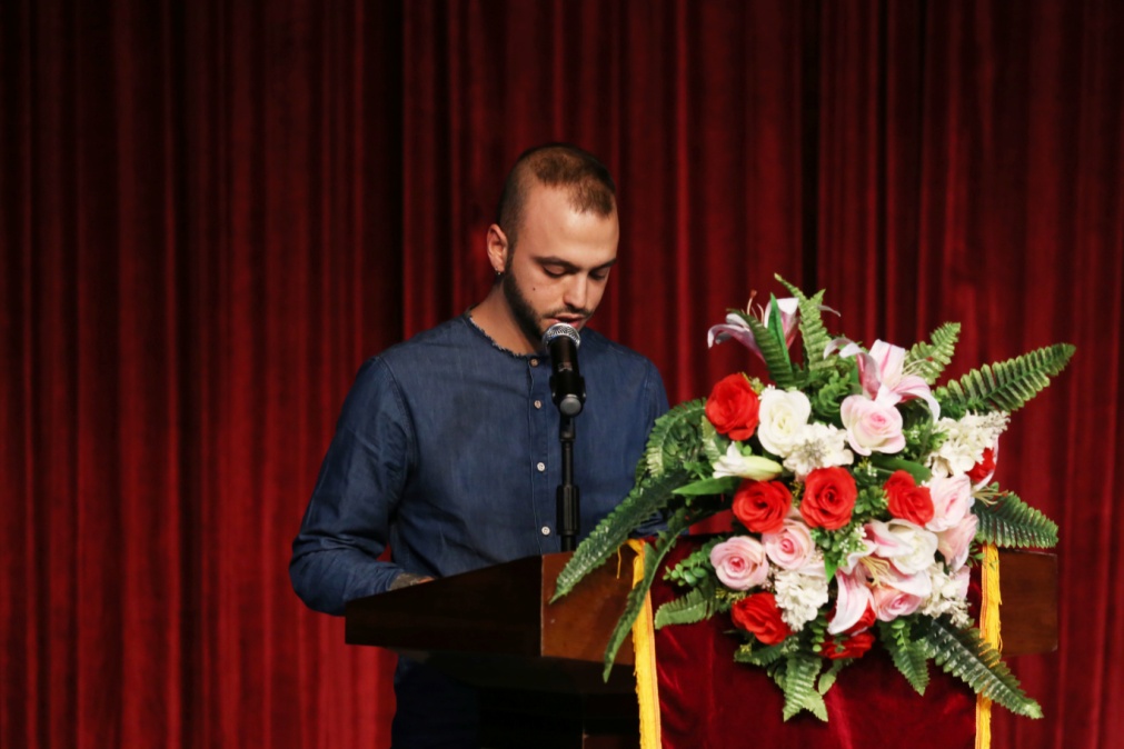 此外,典礼上还为本学期外国留学生班长、留学生班级助理及办公室助理颁发了聘书。欣赏了来自日本、韩国、也门和印度尼西亚等地发来的历届校友们送来的祝福。典礼在四位留学生表演的诗歌朗诵《面朝大海,春暖花开》中圆满结束。
