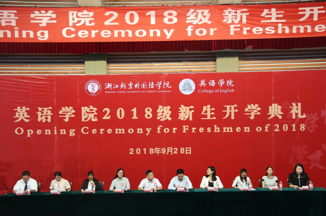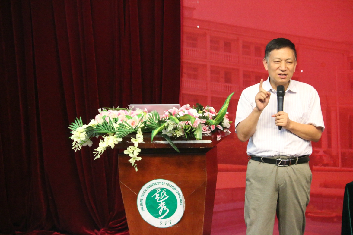 典礼第二项议程,由英语学院院长余卫华教授为新学期典礼致辞,全英文的讲话,表达了对新生们的切切希望,希望大家越来越优秀,更能超越优秀。放下手机追逐自己的梦想,成就自己的理想。为我们的新生带来了真正的开学第一课。